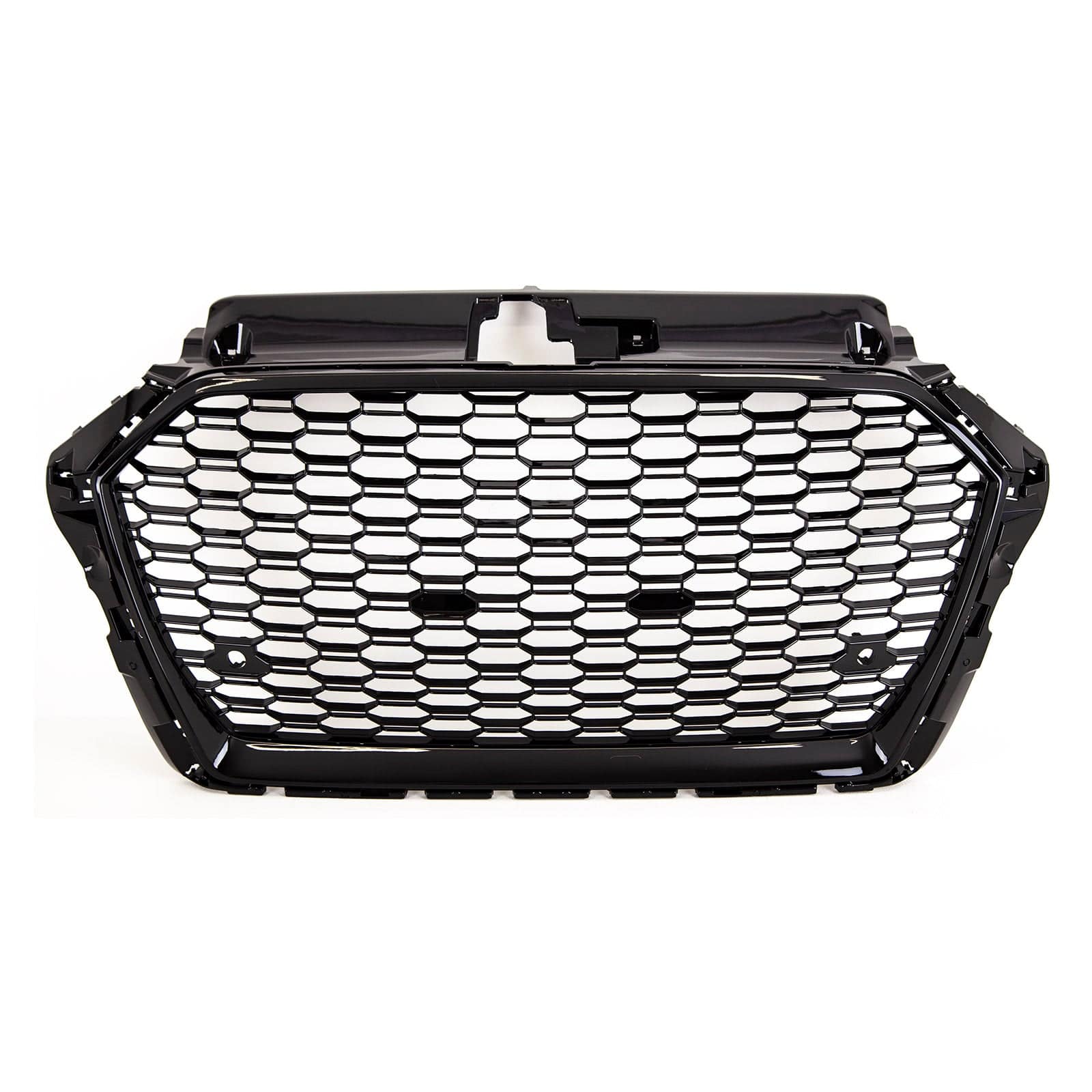 Fits Audi A3 S3 2016-2020 Front Main Grille Gloss Black Honeycomb RS3 Look Badgeless Without Active Cruise Control Holes