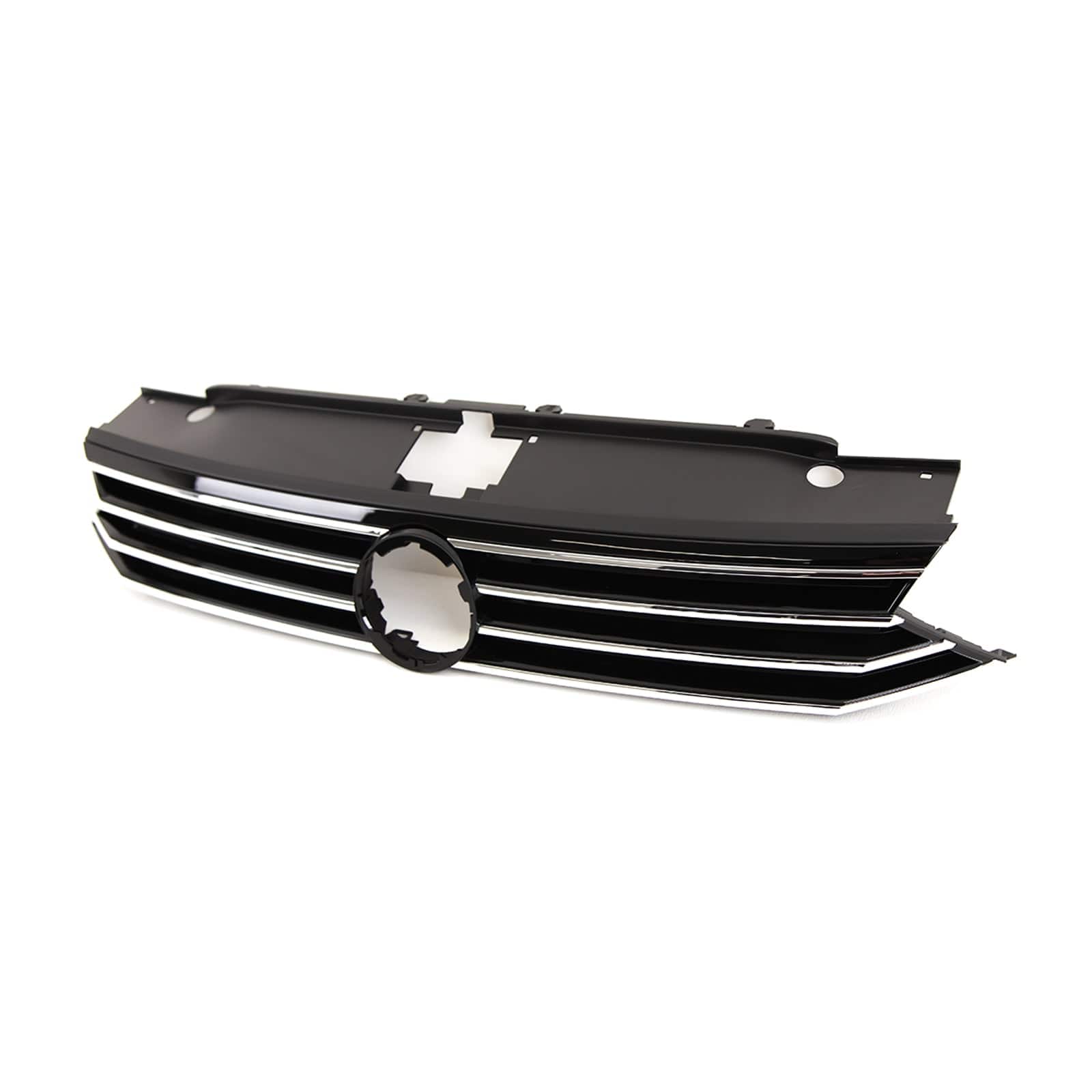 Fits VW Passat 2015- Front Main Grille Black With Chrome Slats