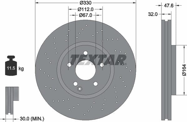 1 X Front Brake Disc Perforated Vented 92124100 Textar 330 mm Diameter
