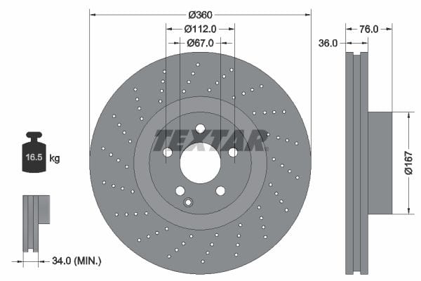 1 X Front Brake Disc Perforated Vented 92124200 Textar 360 mm Diameter
