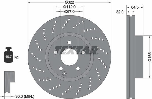 1 X Front Coated Brake Disc Pro Perforated Vented 92163403 Textar 322 mm Diameter