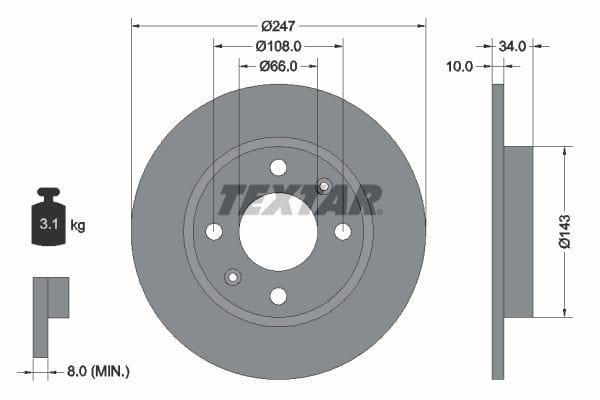 1 X Front Coated Brake Disc Pro Solid 92029803 Textar 247 mm Diameter