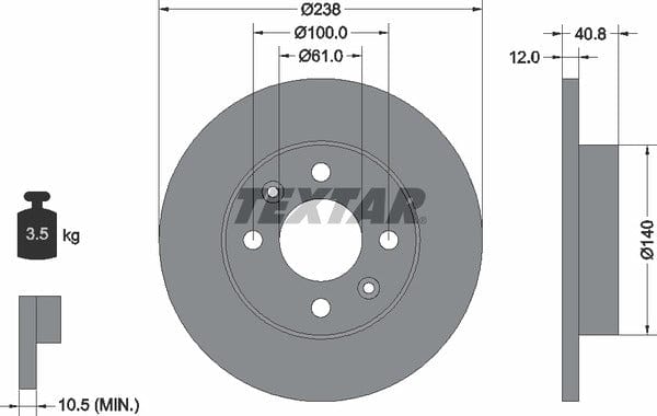 1 X Front Coated Brake Disc Pro Solid 92036103 Textar 238 mm Diameter
