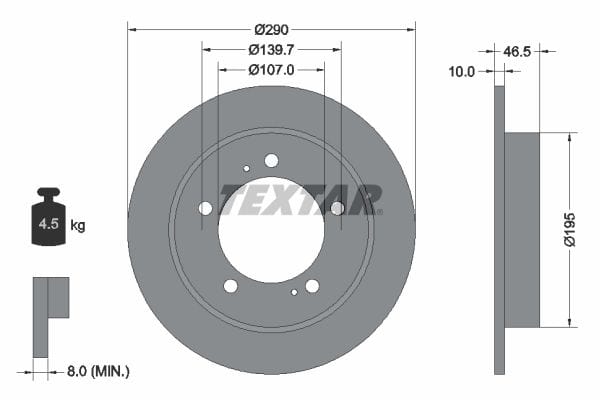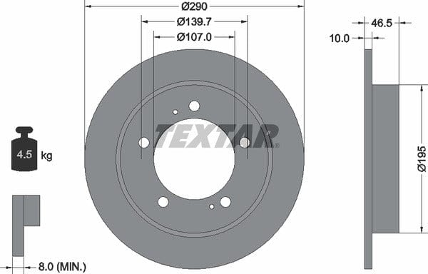1 X Front Coated Brake Disc Pro Solid 92066003 Textar 290 mm Diameter