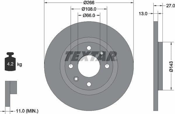 1 X Front Coated Brake Disc Pro Solid 92089103 Textar 266 mm Diameter