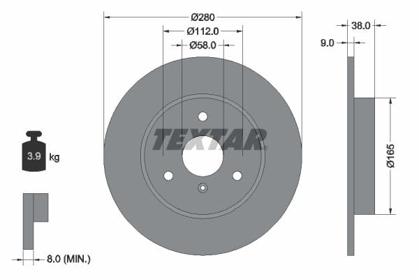 1 X Front Coated Brake Disc Pro Solid 92097603 Textar 280 mm Diameter