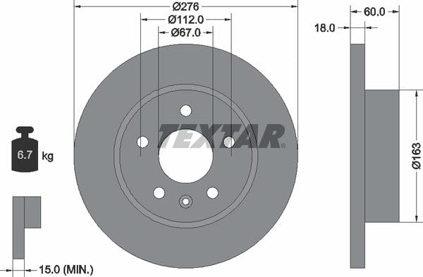 1 X Front Coated Brake Disc Pro Solid 92129203 Textar 276 mm Diameter