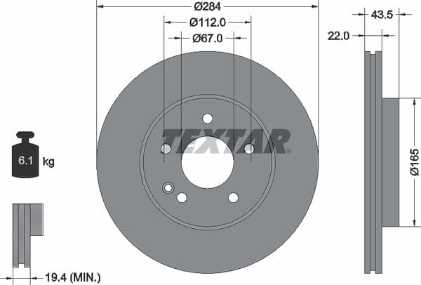 1 X Front Coated Brake Disc Pro Vented 92059403 Textar 284 mm Diameter