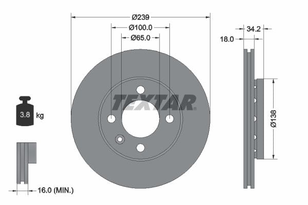 1 X Front Coated Brake Disc Pro Vented 92072003 Textar 239 mm Diameter