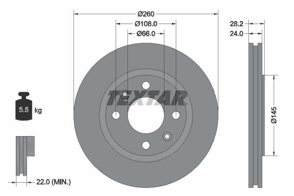 1 X Front Coated Brake Disc Pro Vented 92078603 Textar 260 mm Diameter