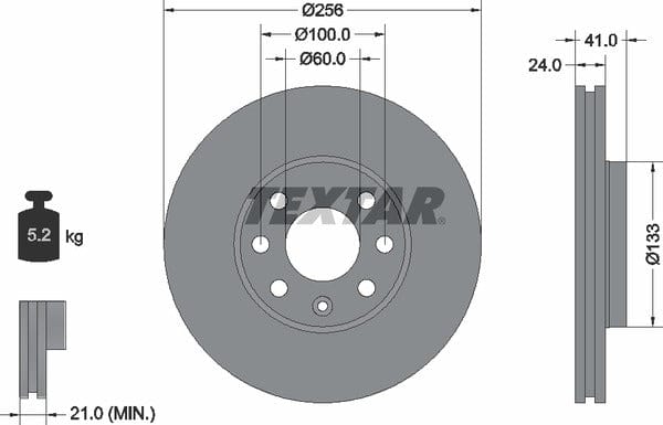 1 X Front Coated Brake Disc Pro Vented 92091803 Textar 256 mm Diameter
