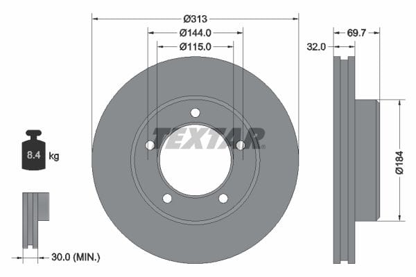 1 X Front Coated Brake Disc Pro Vented 92108103 Textar 313 mm Diameter