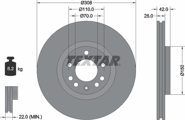 1 X Front Coated Brake Disc Pro Vented 92110903 Textar 308 mm Diameter