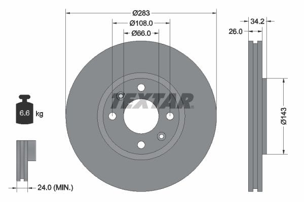1 X Front Coated Brake Disc Pro Vented 92111603 Textar 283 mm Diameter