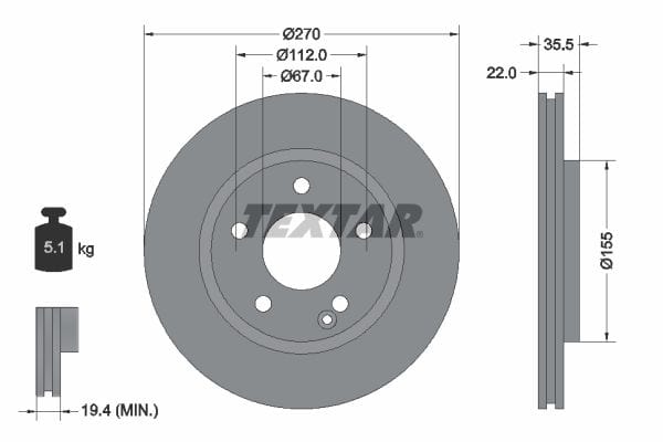 1 X Front Coated Brake Disc Pro Vented 92124503 Textar 270 mm Diameter