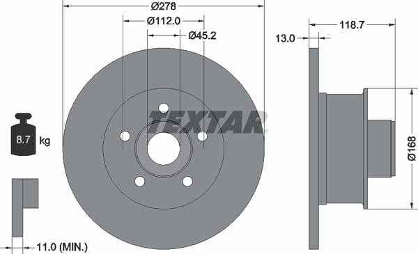 1 X Front Brake Disc Solid 92022000 Textar 278 mm Diameter