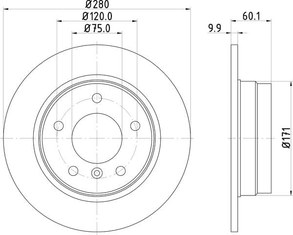 1 X Brake Disc Solid Rear PCD10892 DON 280 mm Diameter