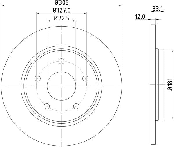 1 X Brake Disc Solid Rear PCD12542 DON 305 mm Diameter