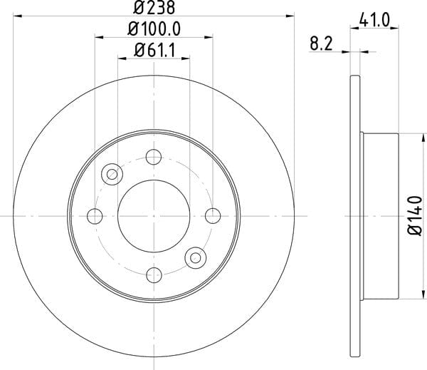 1 X Brake Disc Solid Front PCD12972 DON 238 mm Diameter