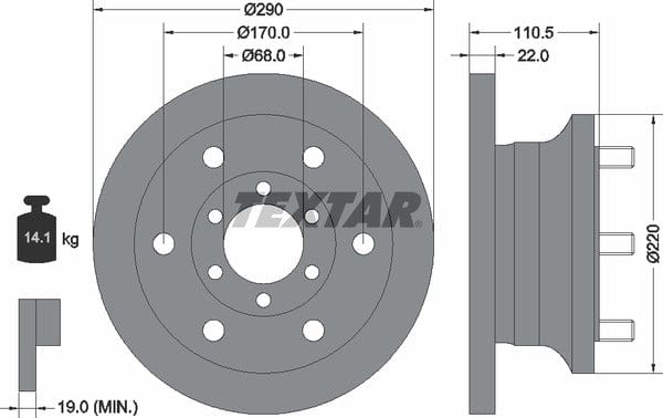 1 X Front Brake Disc Solid 93095100 Textar 290 mm Diameter