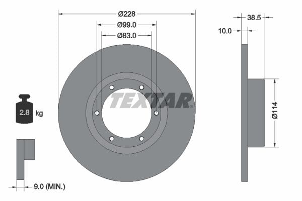 1 X Front Brake Disc Solid 92009200 Textar 228 mm Diameter