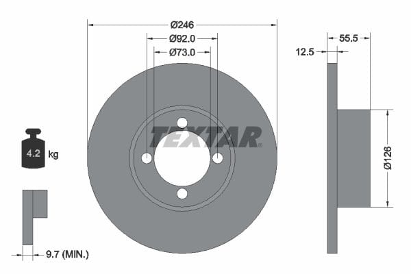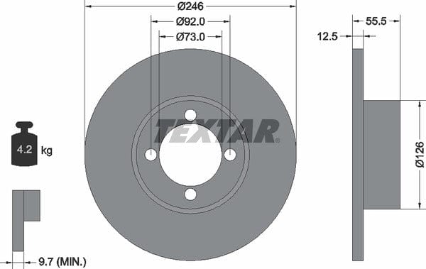 1 X Front Brake Disc Solid 92010700 Textar 246 mm Diameter