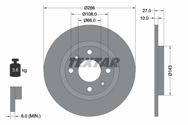 1 X Front Brake Disc Solid 92029900 Textar 266 mm Diameter