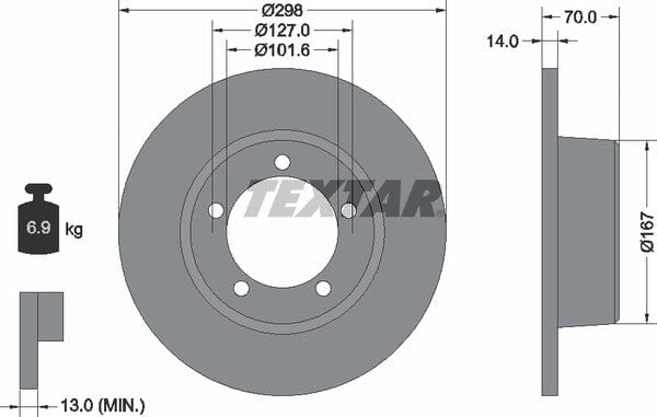 1 X Front Brake Disc Solid 92040600 Textar 298 mm Diameter