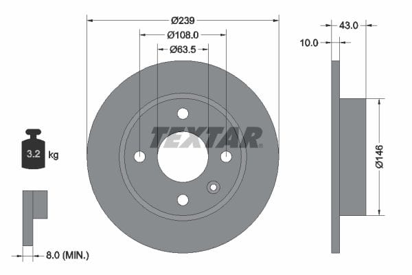 1 X Front Brake Disc Solid 92050900 Textar 239 mm Diameter