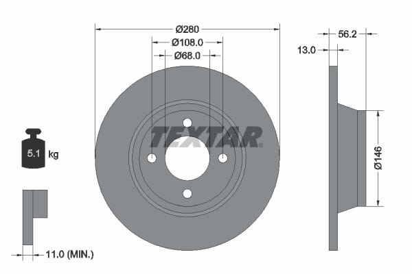 1 X Front Brake Disc Solid 92060400 Textar 280 mm Diameter