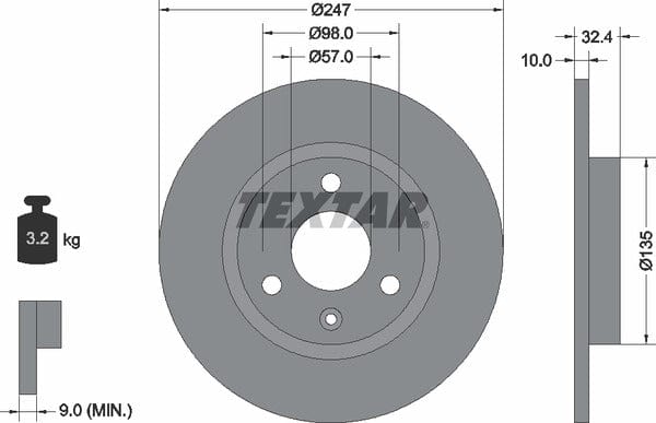 1 X Front Brake Disc Solid 92067300 Textar 247 mm Diameter