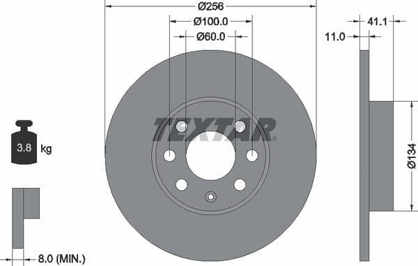 1 X Front Brake Disc Solid 92091700 Textar 256 mm Diameter
