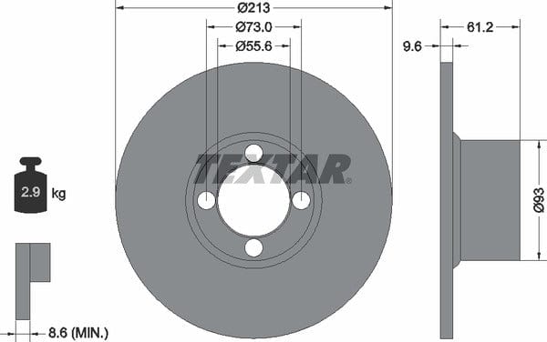 1 X Front Brake Disc Solid 92092600 Textar 213 mm Diameter