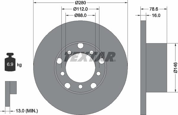 1 X Front Brake Disc Solid 93012400 Textar 280 mm Diameter