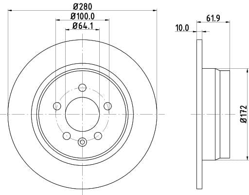 1 X Brake Disc Solid Rear / PCD19072 DON 280 mm Diameter