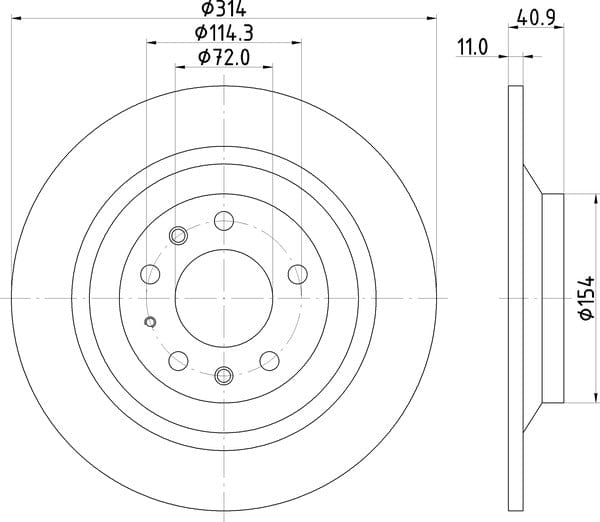 1 X Brake Disc Solid Rear / PCD21522 DON 314 mm Diameter