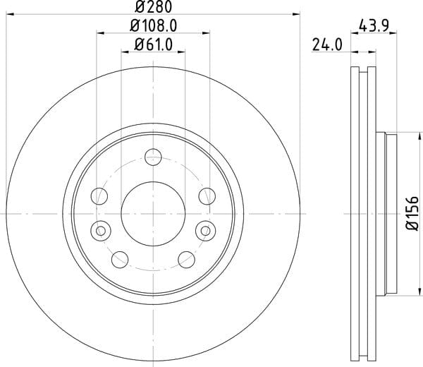 1 X Brake Disc Vented Front PCD11222 DON 280 mm Diameter