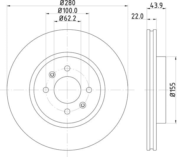 1 X Brake Disc Vented Front PCD13462 DON 280 mm Diameter