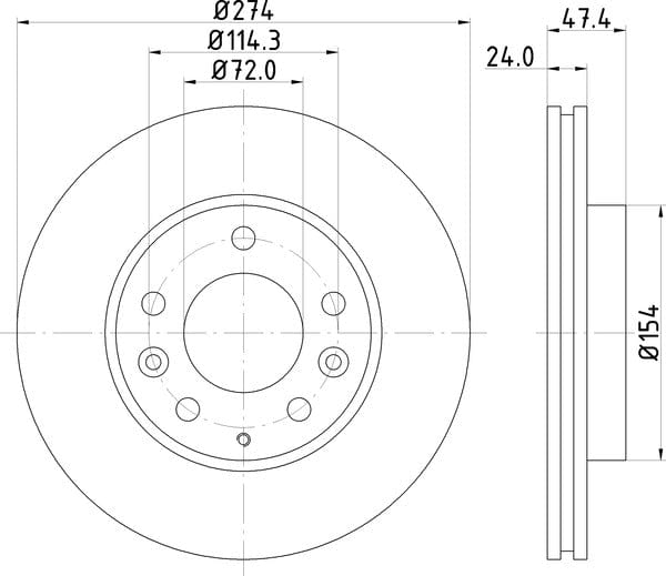1 X Brake Disc Vented Front PCD14332 DON 274 mm Diameter