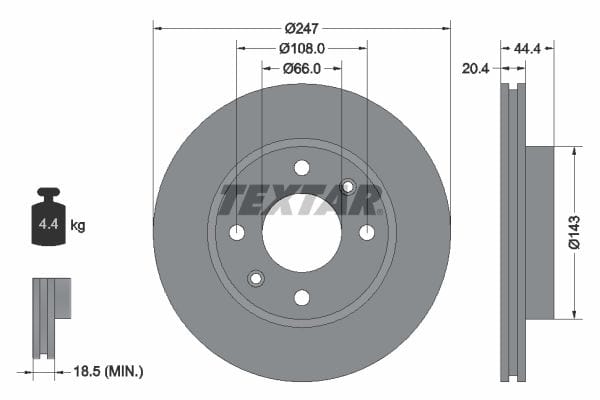 1 X Front Brake Disc Vented 92033800 Textar 247 mm Diameter