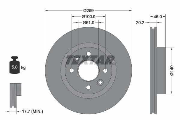 1 X Front Brake Disc Vented 92036400 Textar 259 mm Diameter