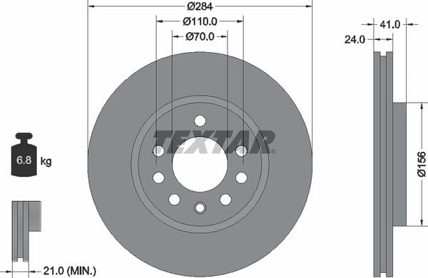 1 X Front Brake Disc Vented 92066200 Textar 284 mm Diameter