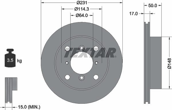 1 X Front Brake Disc Vented 92069000 Textar 231 mm Diameter