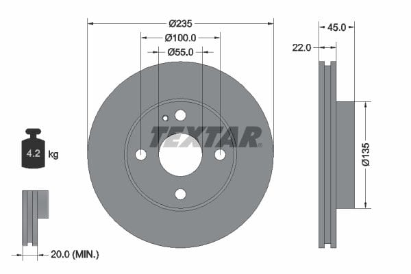 1 X Front Brake Disc Vented 92071500 Textar 235 mm Diameter