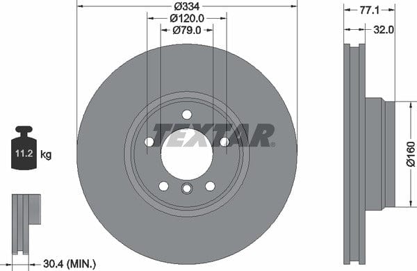 1 X Front Brake Disc Vented 92072200 Textar 334 mm Diameter