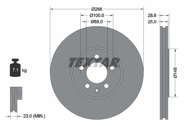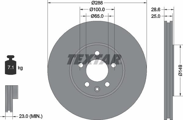 1 X Front Brake Disc Vented 92072800 Textar 288 mm Diameter