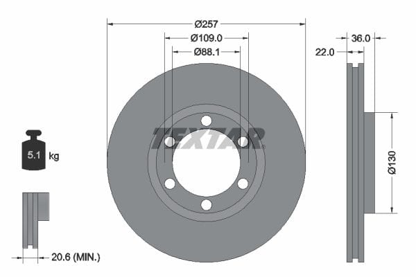 1 X Front Brake Disc Vented 92075800 Textar 257 mm Diameter