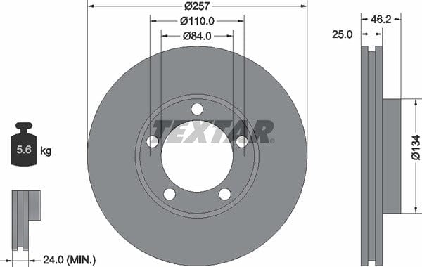 1 X Front Brake Disc Vented 92080300 Textar 257 mm Diameter