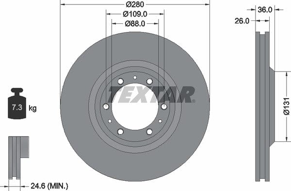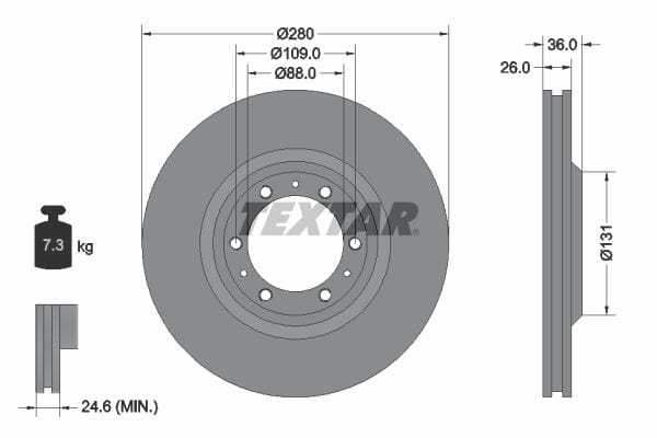 1 X Front Brake Disc Vented 92091400 Textar 280 mm Diameter
