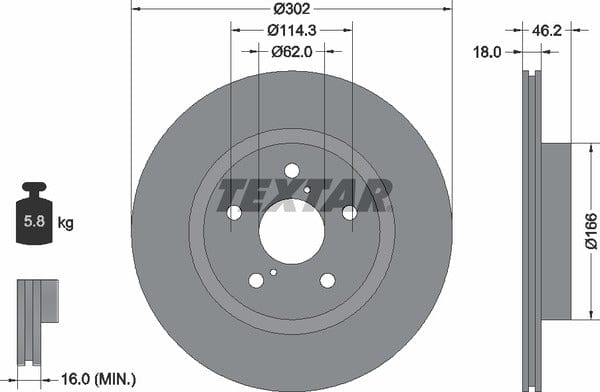 1 X Front Brake Disc Vented 92093500 Textar 302 mm Diameter